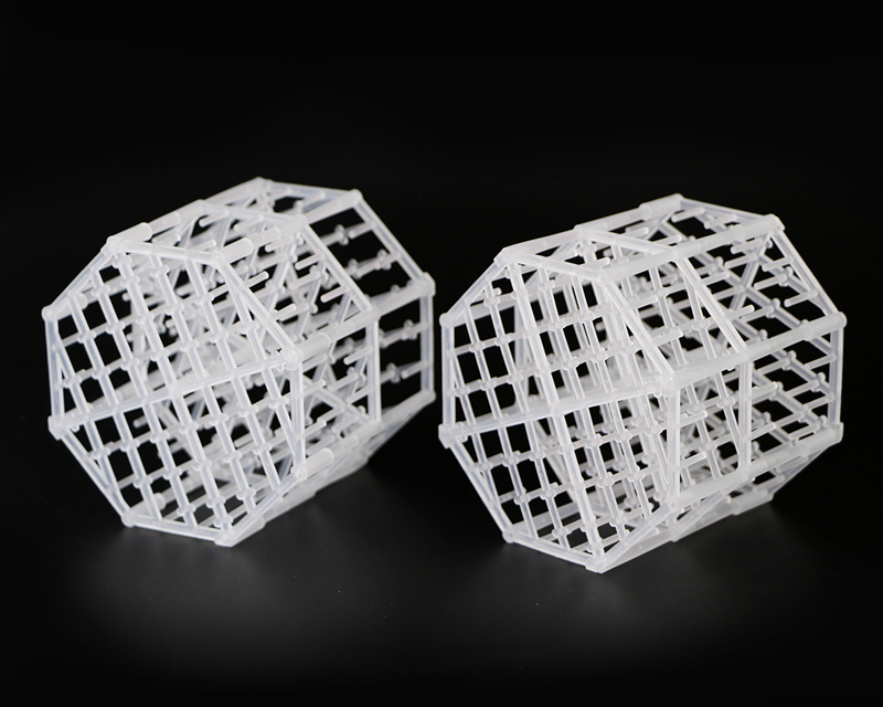 污水處理用化工填料包括圓環形邊框,圓環形邊框內設置有正方形的網格狀結構,在網格狀結構的中間部位設置有方形的加強筋...